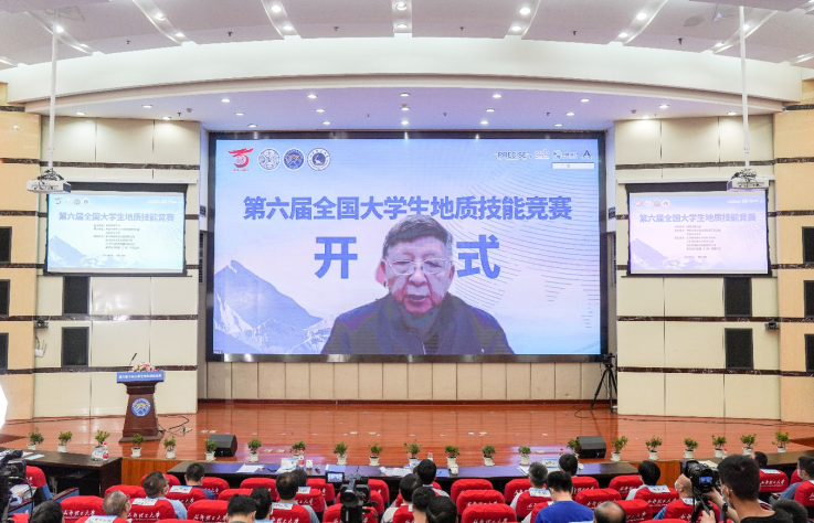 竞赛组委会名誉主任、原中国地质调查局局长、中国地质学会常务副理事长孟宪来,中科院院士、竞赛组委会主任、中国地质学会地质教育研究分会会长、中国地质大学(北京)王成善,中国高等教育学会副会长兼秘书长姜恩来,竞赛组委会副主任、中国地质学会副理事长兼常务副秘书长、中国地质调查局朱立新通过线上出席开幕式。竞赛组委会副主任、成都理工大学校长刘清友,成都理工大学副校长曾英、侯明才线下出席开幕式。第六届全国大学生地质技能竞赛组委会成员、专家仲裁组成员、参赛选手、指导教师、领队、高校师生代表、新闻媒体等千余人通过“线上+线下”结合的方式,共同见证竞赛开幕。开幕式由曾英主持。