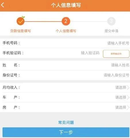 和正规贷款平台一样,诈骗平台要求必须填写一连串的个人信息,包括姓名、手机号、身份证号等。