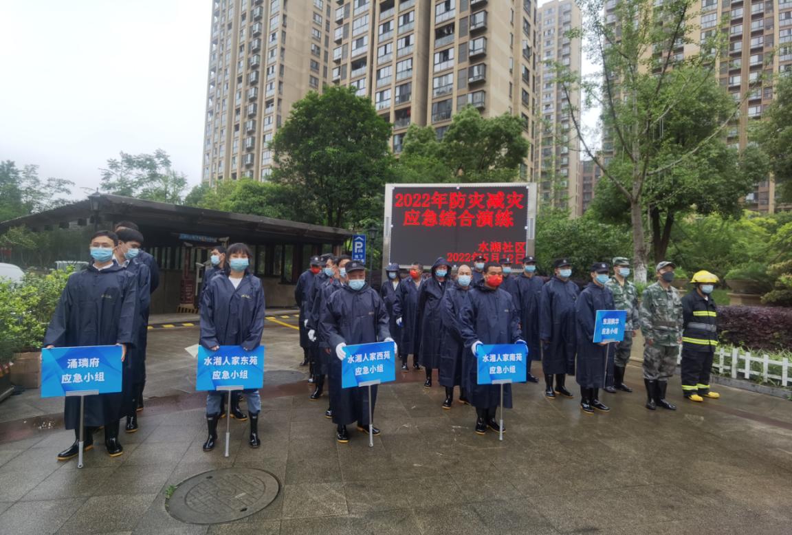 在全国第14个防灾减灾日——5月12日,水湘社区在水湘人家西苑组织了一场防汛抢险应急综合演练,辖区五个小区物业、民兵连、志愿者、参加了本次演练。演练以小区为单位,通过喇叭预警、挡水板安放、沙袋加固、水泵测试、警报解除等环节进行全流程演练,一个讲评一个,针对性整改提高。检查排水沟泵坑位置并使用备用泵抽水加大排水力度。