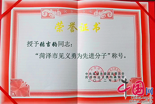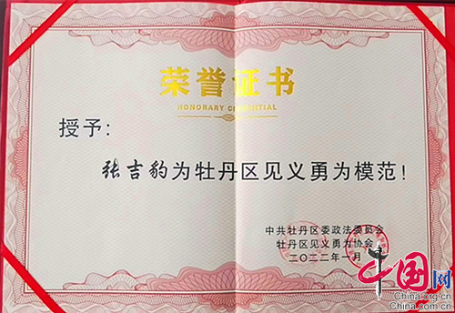 据了解,在今年的一月份,张吉豹还曾荣获“牡丹区见义勇为模范”称号。“我作为一名基层社区干部,要把保障居民生命和财产安全作为自己的责任和义务。”张吉豹说道。(张秀安 岳沛)