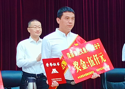 5月18日上午,菏泽市见义勇为工作会议召开,菏泽市牡丹区西城街道办事处新菏社区副主任张吉豹获“菏泽市见义勇为先进分子”称号。