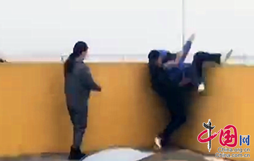 孩子半蹲在狭窄的天台边缘,手握住避雷针。这个姿势已经保持了半个多小时了,加上小孩情绪十分激动,随时都有掉下去的风险,情况十分紧急,张吉豹不断安抚孩子转移其注意力的同时,轻轻靠近,趁孩子不备,看准时机果断出手,将孩子从天台边缘上抱拽下来。