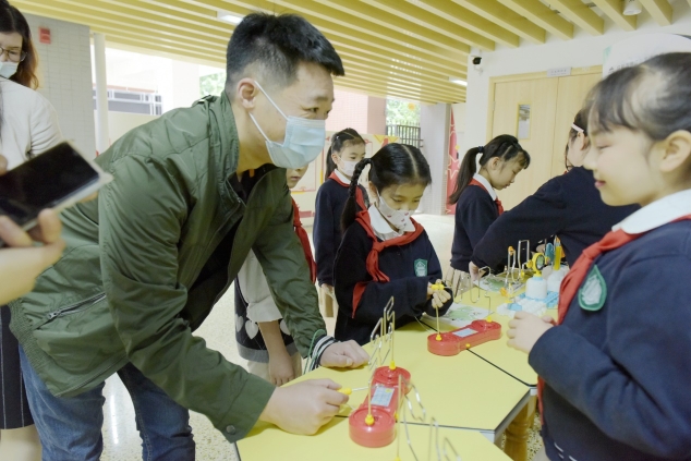 会前,全体与会人员参观了锦江外国语小学精心准备的“最强大脑”社团体验学科融合主题展区,并体验了学校结合课前“三分钟”脑育实践活动研究,聚焦课堂专注力、反应力、记忆力、思维力和自控力的游戏活动,如:“汽车华容道”、“记忆棋”、“七巧板”、“电碰迷宫”、“挖空心思”等等。
