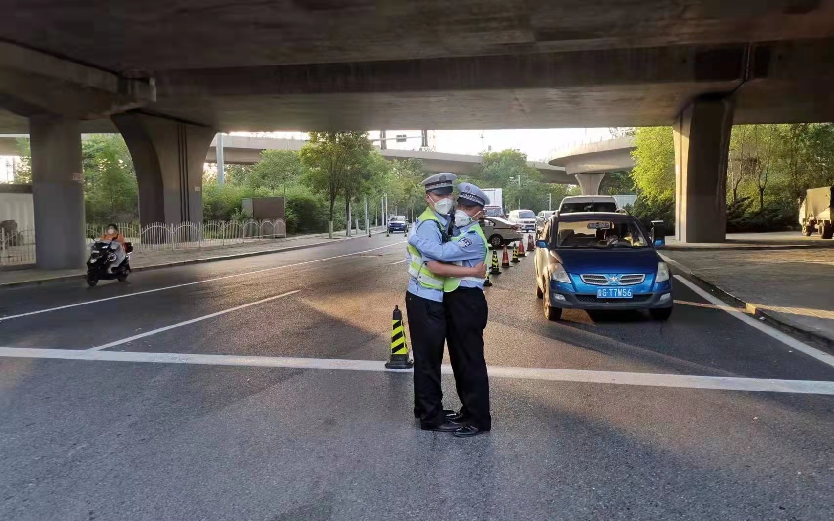 5月22日17时许,在北辰区普济河道立交桥下,一对来自不同单位的警察父子,在 抗疫 一线中偶遇。共同的战场,相同的使命,让这对父子并肩作战,齐心完成任务后,临别时,儿子给了父亲一个拥抱,简单的动作,让人不禁为之动容。有热心的同事,悄悄举起手机,一张温馨的照片就此定格……
