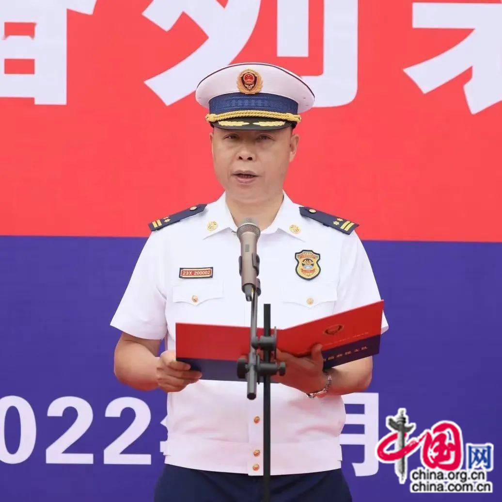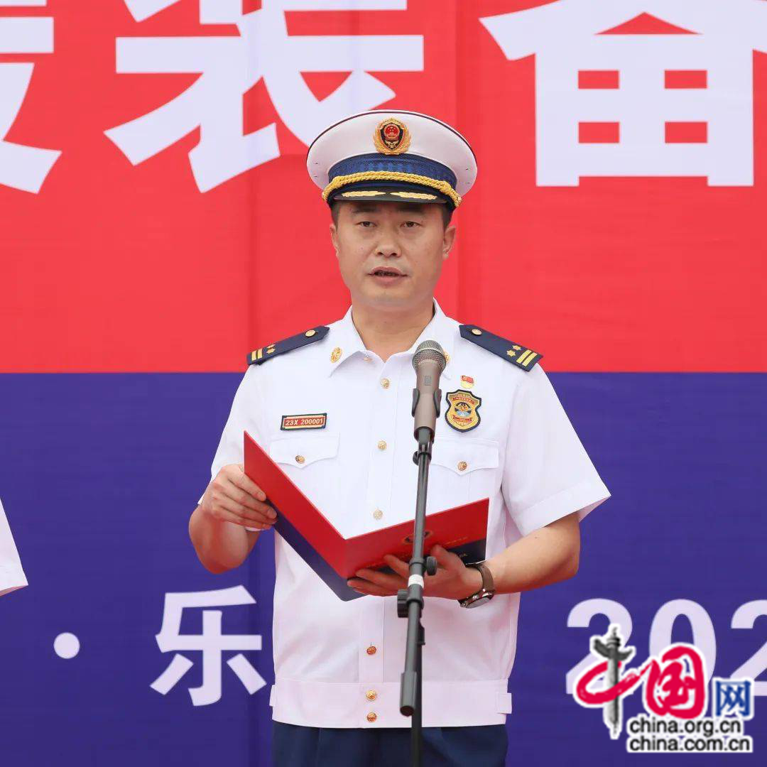 仪式上,张轶副支队长宣读了《乐山市消防救援支队水域救援装备分配方案》,支队领导向列装单位发放了新购车辆钥匙,市中区、五通桥区、沙湾区、高新区、犍为县、大佛景区、沐川等大队相关负责同志上台接装。高新区大队政治教导员王波同志作了表态发言。