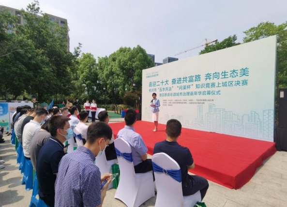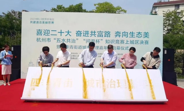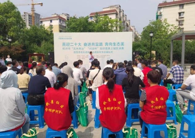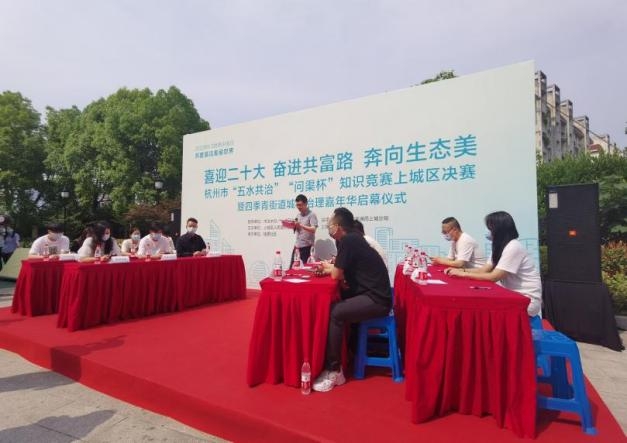 5月27日来自各方的治水达人们汇聚到浙江省杭州市上城区四季青街道的钱景社区,以自己的方式迎接6·5世界环境日的到来。治水“知识达人”通过前期“问渠杯”知识竞赛线上争霸赛、线下选拔赛大展身手, 受到了社会各界广泛的关注 。今天,14个街道的竞赛代表在现场参加了杭州市“五水共治”“问渠杯”知识竞赛上城区决赛,经过闭卷答题、抢答比拼、专业问答三大环节的考验,展现了扎实的治水知识和能力,奠定了各个街道治水工作的成效基础。
