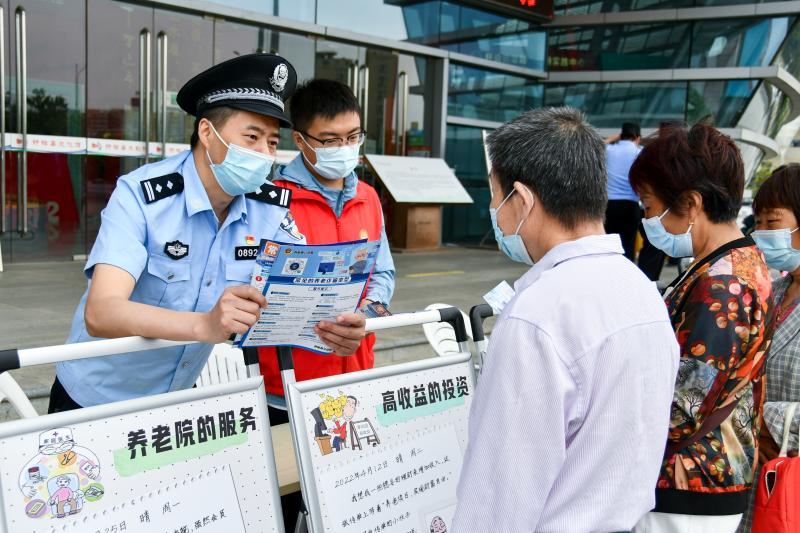 “大妈,免费听养生课、登记信息送鸡蛋,这些优惠活动都是骗子惯用的套路。”江苏淮安市盱眙县公安局刑警大队民警赵标拿着反诈宣传单,向过往的老年群众悉心地讲解着养老诈骗的常见技俩,叮嘱老年人不要轻易相信诈骗分子的甜言蜜语和蝇头小利。