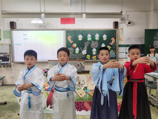 诵读端午经典,传承历史文化。孩子们化身为一个个小诗人,以磅礴之音、赤诚之心,通过多形式朗诵,娓娓道来端午习俗。抑扬顿挫的诵读既丰富了端午节的文化内涵,也让孩子们感受到了诗词之美,从中汲取营养,涵养心灵,不断增强对中华民族传统文化的认同感和自豪感。