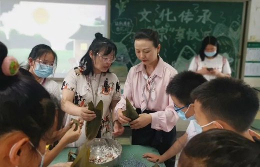 示范结束后,学生们迫不及待的开始亲自动手包起了粽子,他们认真地模仿着老师和家长们的动作,包出一个个形状各异的粽子,脸上都洋溢着喜悦的笑容。