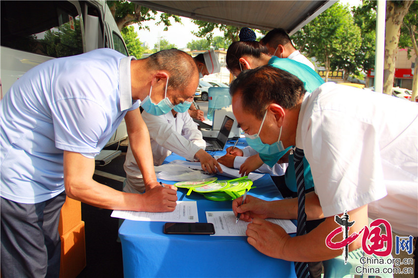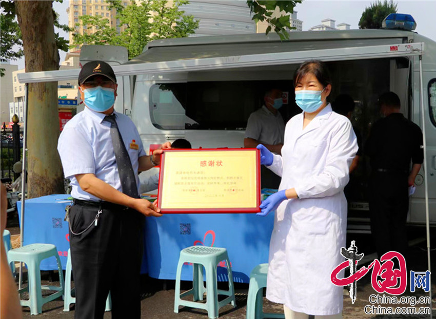 昨夜的大雨,带来今晨凉爽的清风,早晨8点30分,献血车前就自发排起了队伍,在血站工作人员的指引下依次领取填写献血登记表,井然有序地排队等待上车采血。