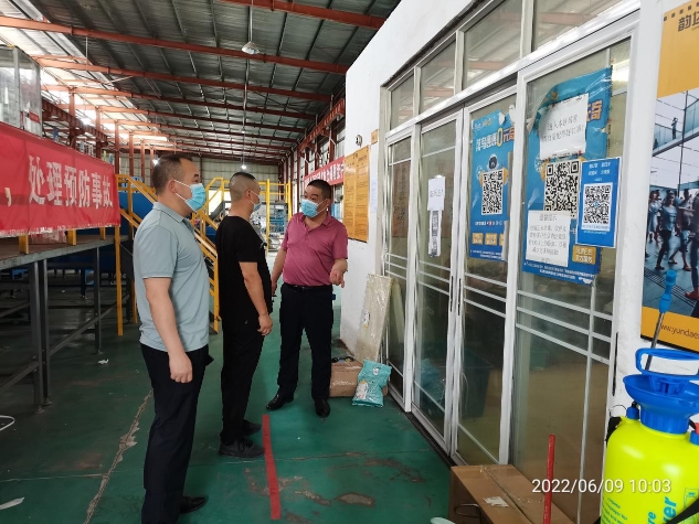 为全面贯彻落实湖北省邮政管理局《关于开展全省邮政快递业生产作业场所安全风险排查整治严防重特大事故的紧急通知》精神,切实加强快递业安全生产工作,6月9日,湖北省江陵县港航物流服务中心对县域内9家快递企业分拣中心、转运中心房屋建筑安全、行车及人员通道安全、消防设备、电器线路、物品存储等方面进行了全面检查,并向企业业主宣贯了第21个“安全生产月”精神。