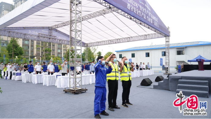 现场参会代表以及业主、施工单位、监理单位的项目负责人带领所有现场人员进行了安全生产月宣誓。