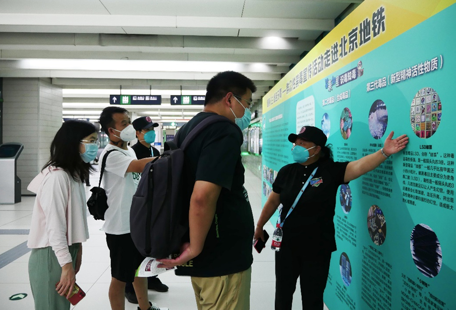 北京市禁毒办协调指导处、团市委权益部、北京禁毒教育基地禁毒教育部、北京市地铁运营有限公司等领导来到青年路地铁站为群众发放宣传品。