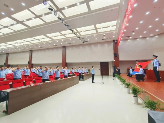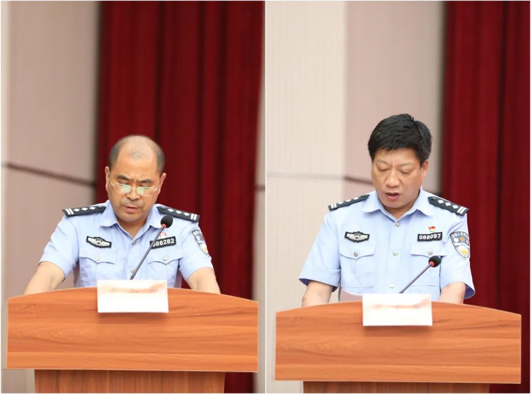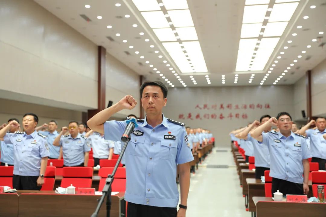 副县长、公安局党委书记、局长毕宁军带领全体民警重温入警誓词。在整齐庄严的宣誓中,全体民警更加坚定了理想信念,守初心、担使命、强定力、勇担当,努力以捍卫正义、保民平安的过硬业绩向党和人民交上合格答卷。