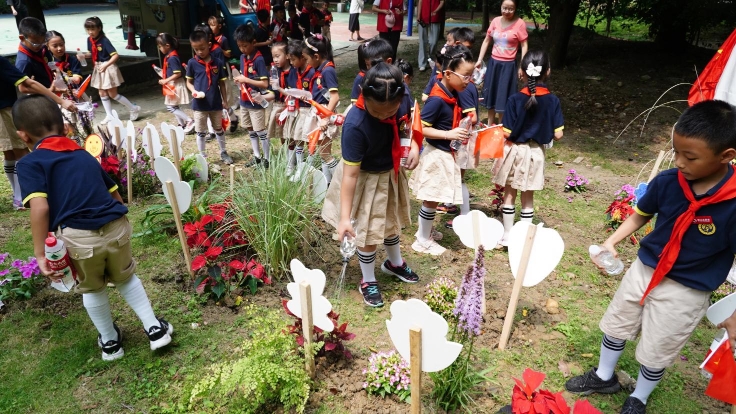 活动现场,党员老师带领团员老师、少先队员们,共同对新打造的社区花园进行维护,在劳动中体验着公园城市、公园社区给人们带来的幸福感。
