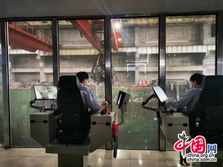 一辆辆封闭垃圾清运车通过专用通道,将满车的其他通过卸料平台倒入垃圾池中,工作人员通过操作系统指挥巨型抓斗,将垃圾池中的垃圾抓起后投入焚烧炉进行焚烧发电……在德阳和新环保发电有限责任公司主厂房一楼的吊控室,公司生产技术部经理雪伟在讲解生活垃圾焚烧发电的流程。