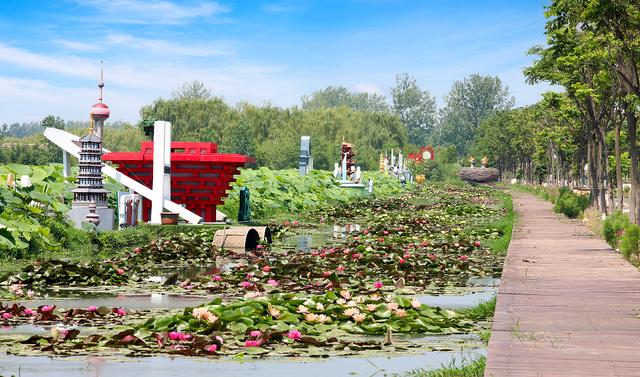 湖边,睡莲长廊花色各异,花姿秀丽;小池杉林,静谧幽深……沿着主题游览路线,游客不仅可以信步赏十里荷花、七彩荷花大道、九曲花海,品特色荷宴、翰墨荷花;也可穿花道,摄花影,更可折荷宿莲舟,体验“误入藕花深处”的意蕴。