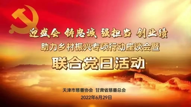 6月29日,天津市慈善协会与甘肃省慈善总会在甘肃庆阳召开“铸忠诚 迎盛会 强担当 创业绩”——津陇慈善情·助力乡村振兴专项行动座谈会暨联合党日活动。天津市人大常委会原副主任、市慈善协会会长散襄军主持会议,甘肃省人大常委会原副主任、省慈善总会会长朱志良,甘肃省政府副秘书长、天津援甘前方指挥部总指挥陈世忠出席并讲话。天津市委统战部三级调研员林琳,天津市慈善协会和甘肃省慈善总会的相关领导、工作人员参加。