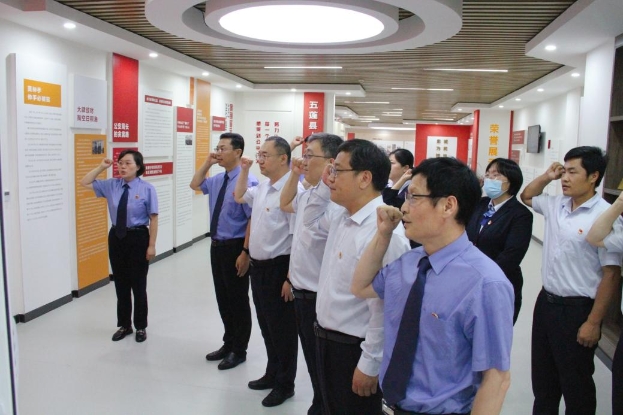签约仪式结束后,全体参会人员参观了五莲县检察院党建文化展览馆,深入了解检察机关职能以及五莲县检察院发展历程。参观最后,大家在誓词墙前,举起右拳,面向党旗,重温入党誓词。句句铿锵的誓言,把对党忠诚化为勇担使命的强大动力。