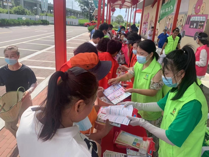 系列活动中,乐清市北白象镇分类办党员干部齐上阵,在党建日一同开展“垃圾分类进企业、进商场”宣传活动,吹起宣传垃圾分类知识的冲锋号角,进一步扩大垃圾分类的宣传广度。活动当天,志愿者们发放垃圾分类知识手册300余份,送出垃圾分类知识桌贴等宣传物资200余份。