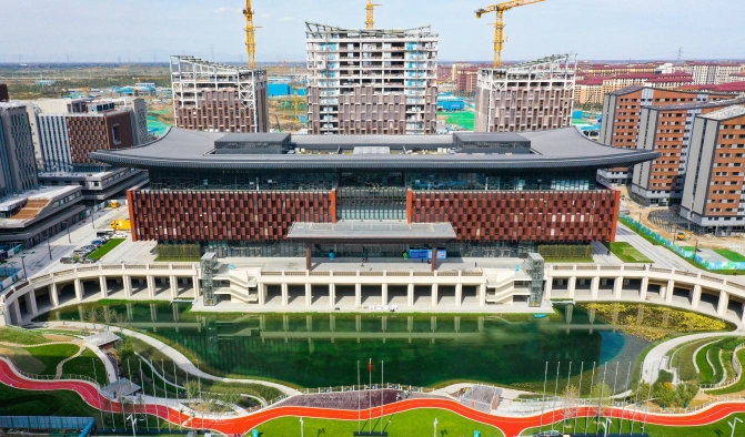雄安样板,是绿色低碳的路径探索。《河北雄安新区规划纲要》提出,要推广绿色建筑。5年来,雄安围绕“绿色生态宜居新城”这一定位,全方位推动建筑领域绿色高质量发展。据统计,截至2021年底,雄安累计开工新建建筑面积2360万平方米,全部按二星级及以上绿色建筑标准设计、建设,其中三星级绿色建筑占比约20%。
