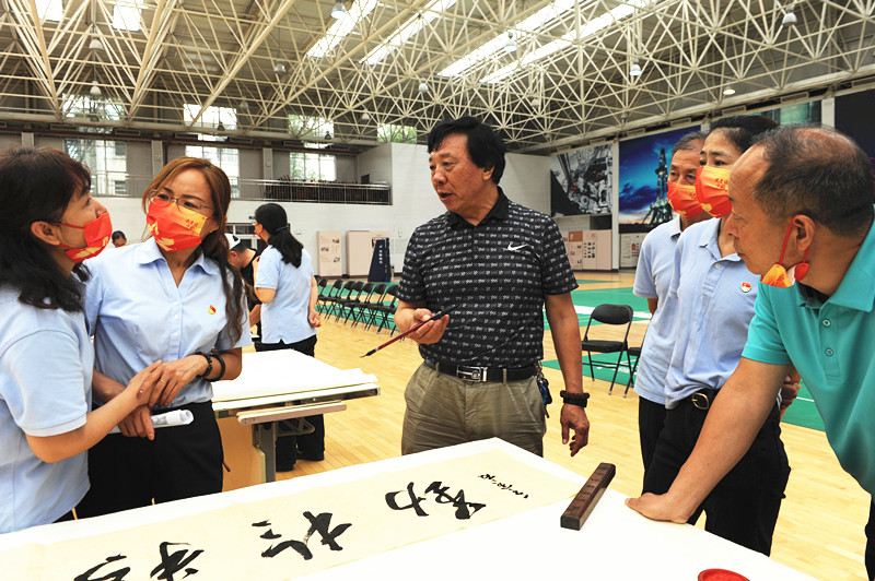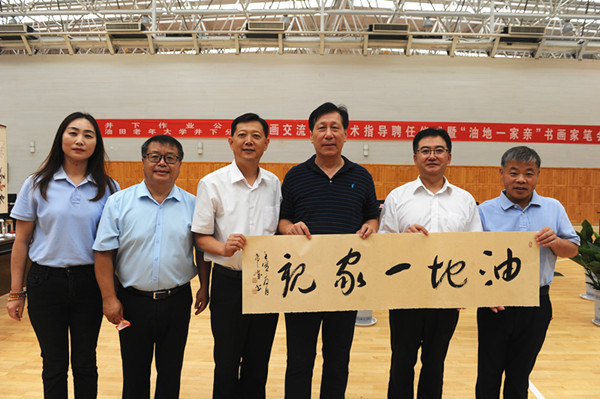 7月26日上午,胜利油田老年大学井下分校书画交流中心艺术指导聘任仪式暨“油地一家亲”书画家交流笔会在胜利油田老年服务管理中心井下老年服务部举行,来自东营市、油田的20余位书画家参加了此次笔会活动,并参观了井下老年书画交流中心。胜利油田老年服务管理中心、胜利石油工程公司井下作业公司负责同志也一同出席活动。