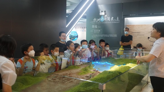 近日,杭州上城区四季青街道钱塘社区组织辖区20余组家庭走进杭州水利科普馆,开展以宋韵水文化为主题的系列暑期研学活动,为假期生活“添彩”。学生们在教学相长、寓教于乐中进一步学习基础水利知识,提高爱水、护水、惜水的意识,助推养成良好的生活习惯。