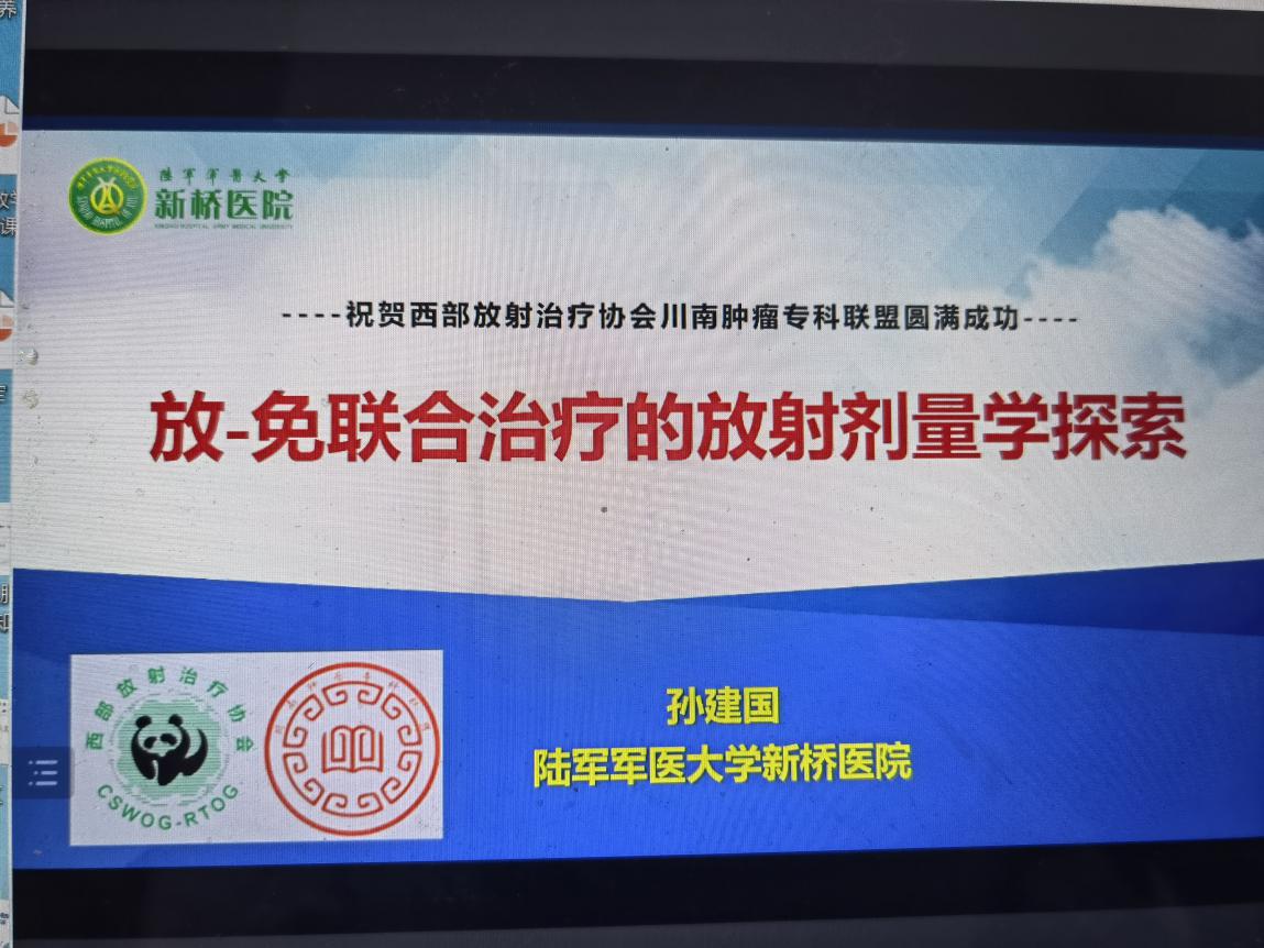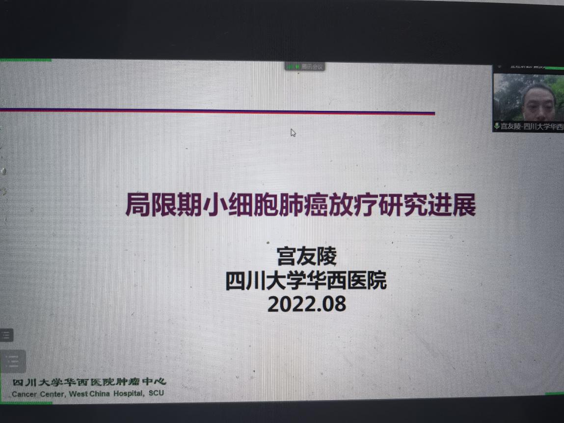 陆军军医大学第二附属医院孙建国教授分享了“放免联合治疗的放射剂量与探索”,这是进展与自己研究的结合,解决困扰临床医生的问题。四川大学华西医院宫友陵教授分享了“小细胞肺癌放射治疗进展”,宫教授昨天在自贡的线上会上分享了同样题目,但昨天偏重广泛期,而今天侧重局限期,完美的补充。罗雨豪副教授分享了西南医科大学附属医院林盛教授的研究“放疗联合免疫治疗的泸州经验”。