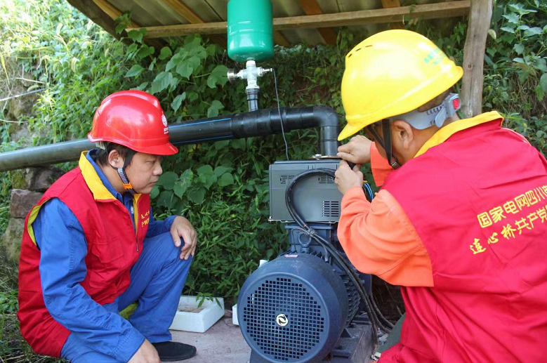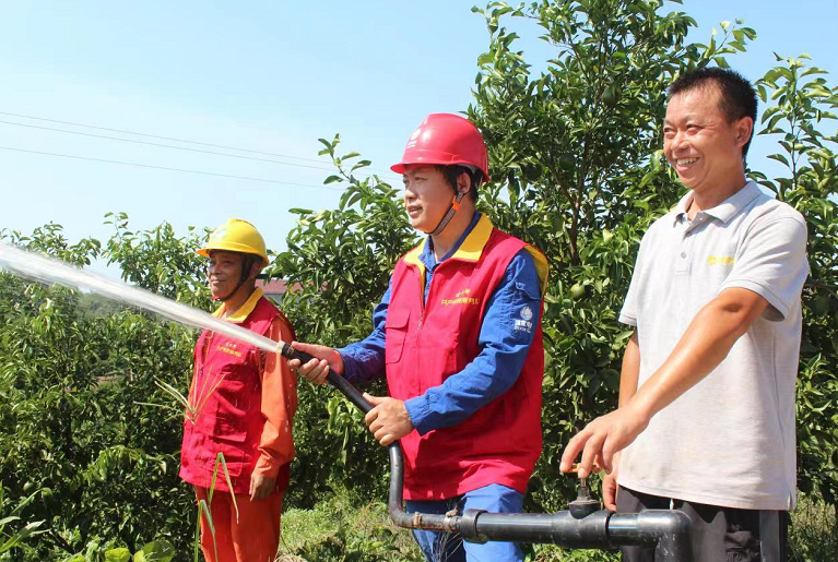 8月14日,国家电网四川电力(广安武胜)连心桥共产党员服务队队员经过2个多小时的高温作业,完成了线路敷设和表计安装等工作。随着开关的合上,15千瓦三相水泵正式通电投入使用,不一会儿,附近玉和水库的清水便成功引进到柑橘园灌溉。