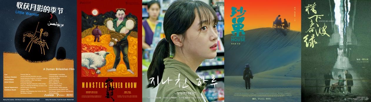 在竞赛单元获奖的5部作品中,荣获评审委员大奖的《收获月影的季节》通过讲述哈萨克民族的“传统规则”,含蓄且朦胧地描绘了每个人的成长心境,在其诗意的外表下,蕴含着强烈的现实主义内核;获得导演奖的《山下野兽》则是本片导演根据亲身经历改编而来,同时也是对灵魂内心深处的自我审视;短片《最后一天》凭借巧妙的故事情节与叙事技巧,传递给观众无限的想象空间,摘得剧本奖;对外友好协会奖的得主《沙巢》用超现实主义的手法,表现出城市的高速运转,也描述了城市中人与人之间筑起的“内心高墙”;获得CJ梦享奖的《桥下春波绿》将疫情作为故事背景,侧面展现出人类在大自然面前的脆弱与渺小,也颂扬了人世间的温暖与和谐。