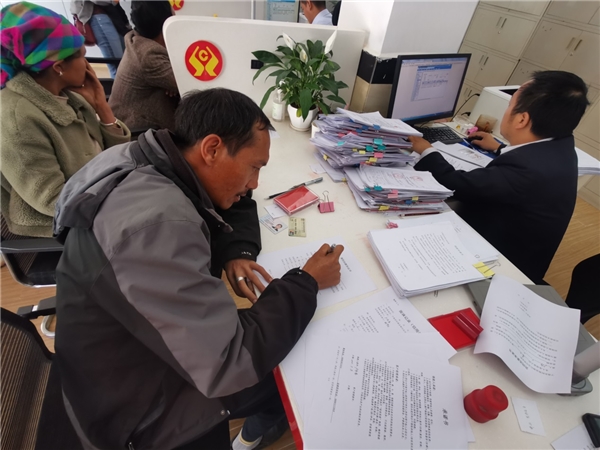 (西布河乡先锋村烟农在信用社办理烟农物资贷款 沈权摄)