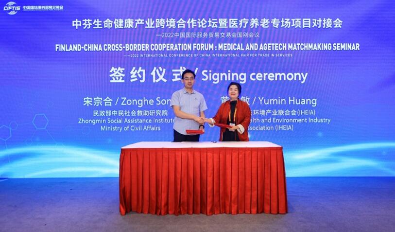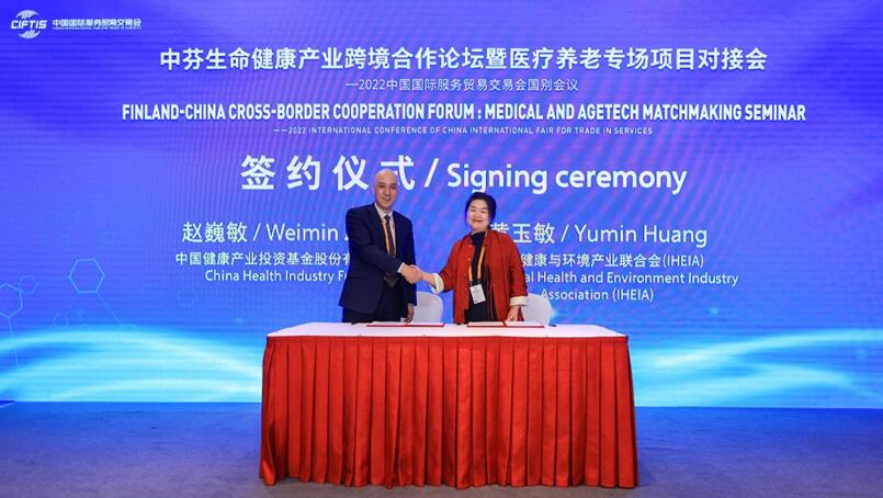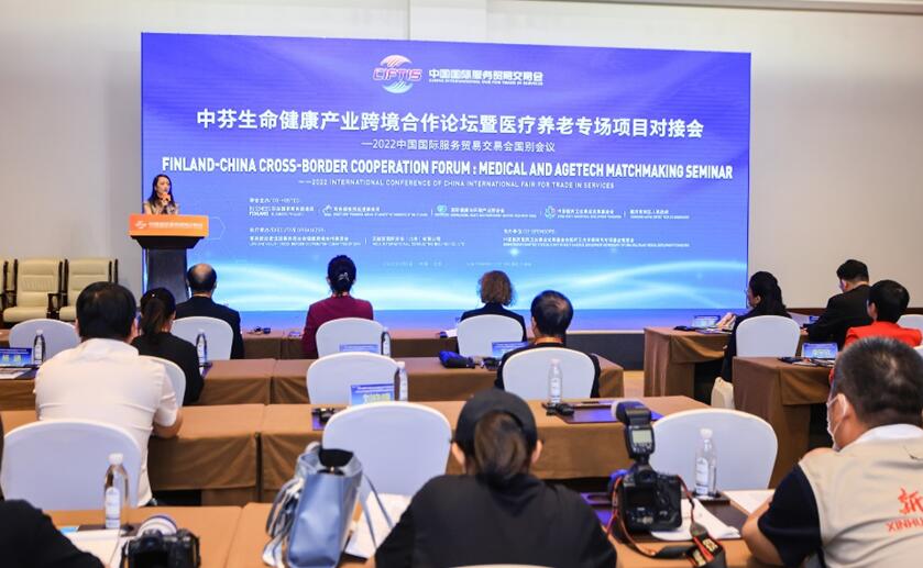 9月5日,中芬生命健康产业跨境合作论坛暨医疗养老专场项目对接会在国家会议中心举行。作为2022年中国国际服务贸易交易会的重要国别会议之一,本次论坛以“线下+线上”方式组织,由芬兰国家商务促进局(Business Finland)、中国商务部投资促进事务局、国际健康与环境产业联合会(IHEIA)、中国医药卫生事业发展基金会、重庆市南岸区人民政府联合主办,由商务部投资促进局生命健康跨境合作工作委员会、艾赫亚国际咨询(北京)有限公司执行承办,由中国医药卫生事业发展基金会医药卫生发展研究专项基金管委会协办,旨在通过国际化、专业化、综合型的服贸会平台,探索中芬生命健康领域“政府-投资促进机构-基金会-协会-企业”跨界合作的创新模式。