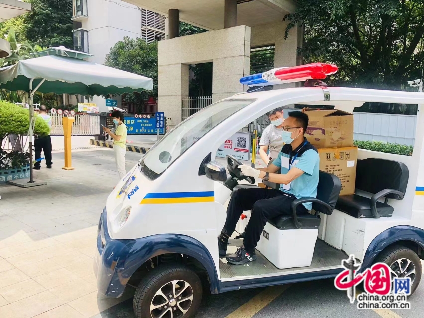 志愿者突击队用巡逻车搬运生活物资 (锦江区教育局供图)