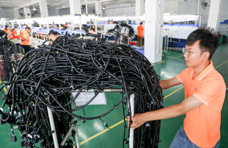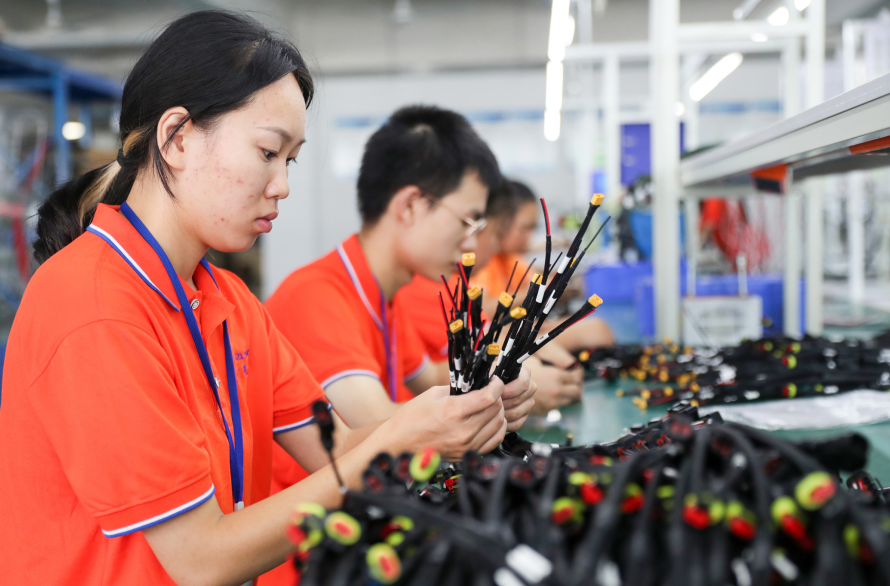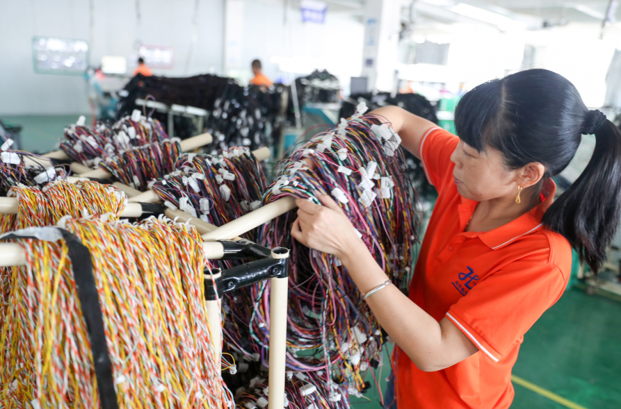 9月8日,在四川省华蓥市华蓥山经开区的四川大千电子科技有限公司车间内,岗无虚席的员工有的在加工航空发动机线束,有的在检测质量,有的在包装产品,生产线上一派繁忙景象。