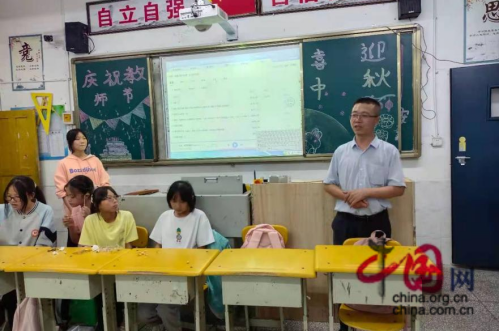 活动开始前,张彬校长进入教室,首先向老师表示了亲切慰问并祝愿他们身体健康、阖家欢乐,还祝福同学们中秋快乐,学习进步。张校长勉励老师们要不忘初心、牢记使命,深入落实立德树人的根本任务,推动学校各项工作再上新台阶,以优异的成绩向党的二十大献礼。张校长向新同学介绍了学校的师资力量并对刚刚迈入初中阶段的新同学提出三点建议:一、遵守校纪班规,做一个合格的中学生,二、尽快适应新环境,正确对待与同学之间的关系,三、转变学习观念,提升学习能力,努力在学业上再攀高峰。
