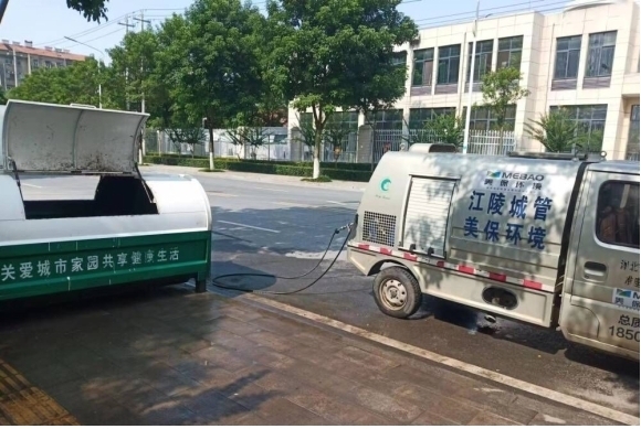 据了解,为改善市容环境,提升城市形象,提高环卫服务水平,确保环卫设施清洁、高效运转,减少因居民生活垃圾投放而聚集的蚊蝇所滋生的细菌,预防夏季疾病的传染。9月上旬,江陵县城市管理执法局召开专项清理行动动员会,成立工作专班,集中1个月时间积极开展全城垃圾桶(箱)“洗澡”集中大清洗行动,重点整治垃圾桶(箱)周边有垃圾、桶体脏、无盖破损、摆放不整齐、乱拖乱放及清运不及时等影响市容市貌的问题,确保每一个垃圾收集容器干净、整洁。