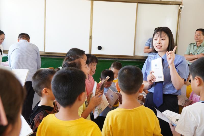 “校园暴力可以防,方法掌握要适当,求助师长来帮忙,自我保护有保障......”巡讲即将结束时,孩子们一起和未检干警大声念出了《预防校园暴力小口诀》,再次提醒同学们要珍惜友谊和校园生活,对校园暴力说不!干警们也给孩子们发放了提前准备好的精美小礼物。