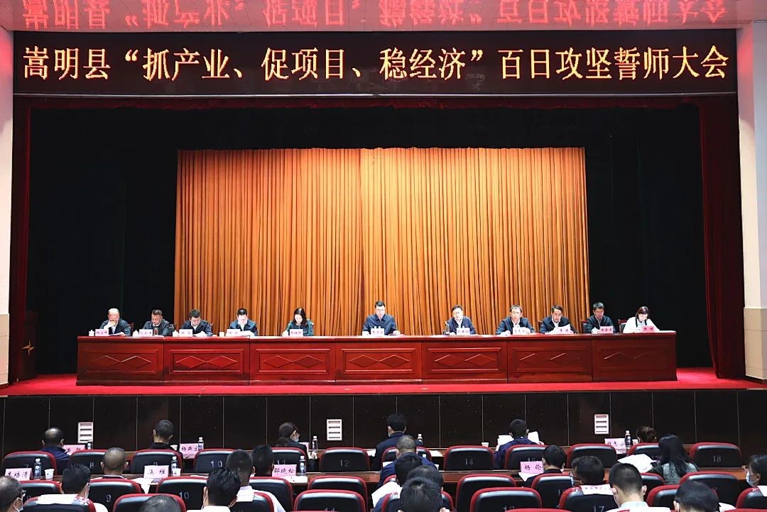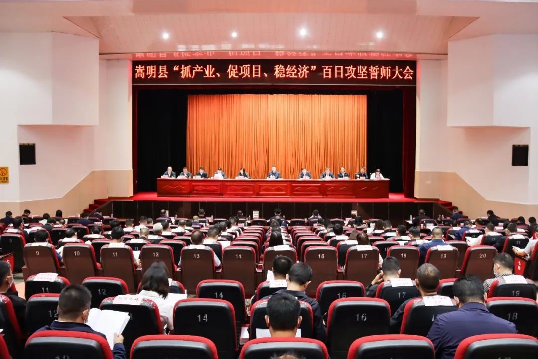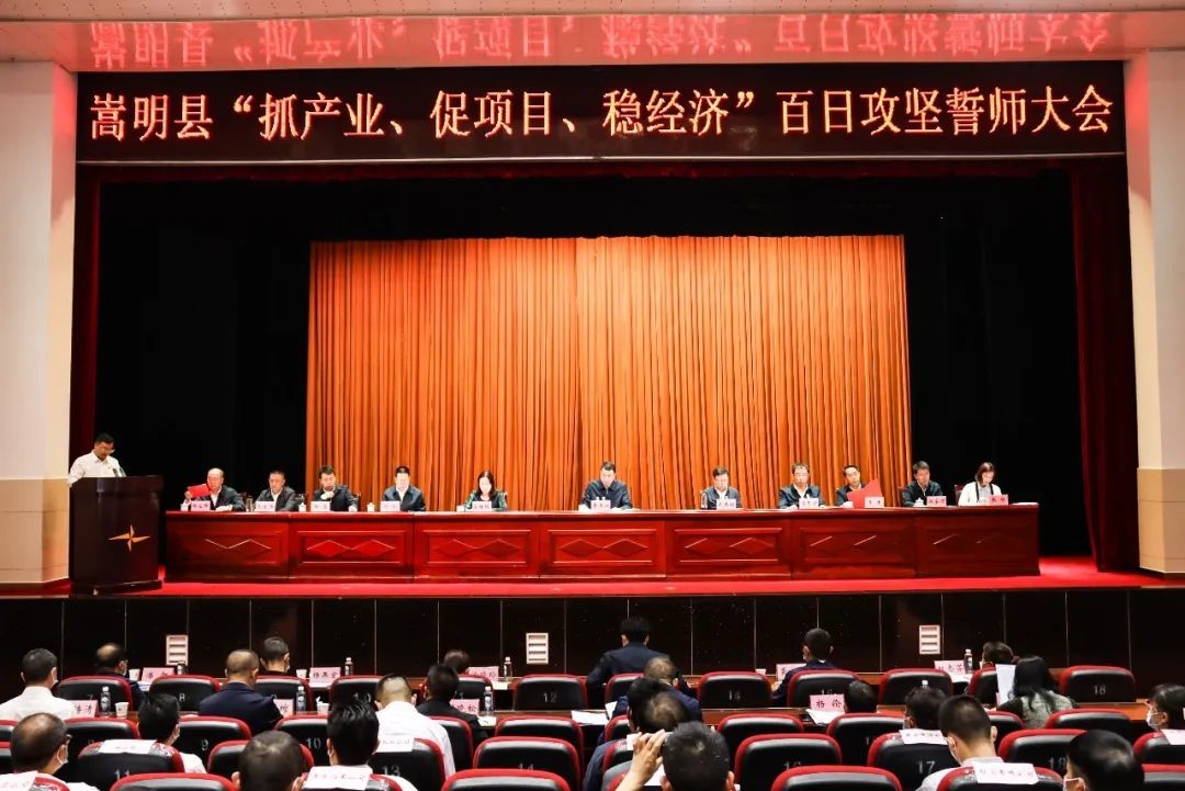 会上,县委副书记、代理县长武春禄宣读了《中共嵩明县委 嵩明县人民政府关于启动“抓产业、促项目、稳经济”百日攻坚行动的决定》,要求组建百日攻坚冲锋队,倒排工期,挂图作战,9-12月,完成固定资产投资69亿元,全年累计完成135.5亿元,力争全年工业总产值增速“保五争八”,新引进重大产业项目12个,推进11个重点洽谈项目完成招商引资协议签订,重点签约项目促开工,重点开工项目促入库。