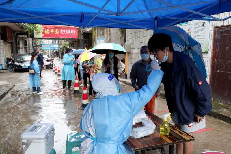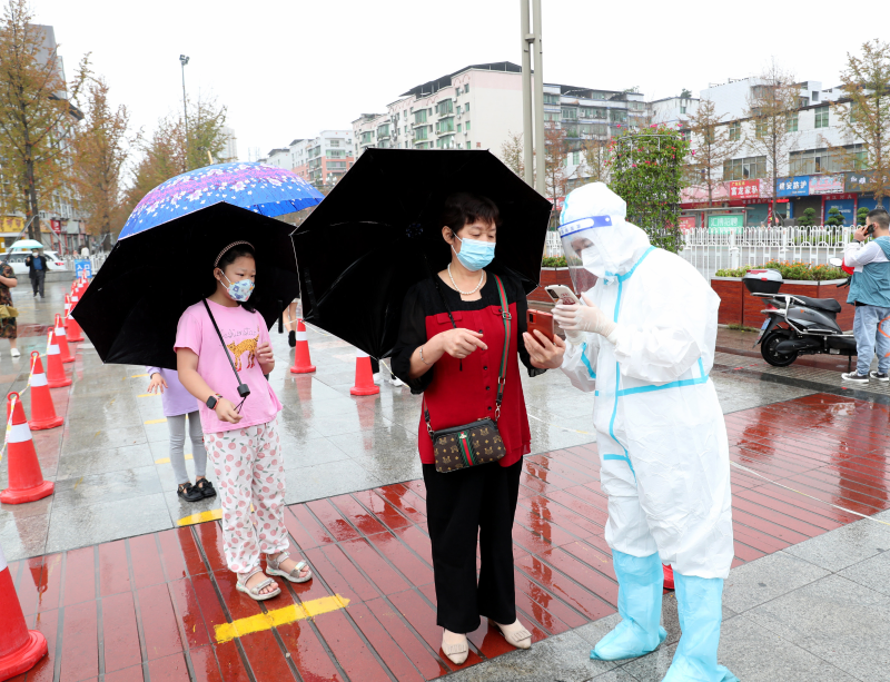 广安区信访局和北辰街道党员志愿者在协助开展核酸检测