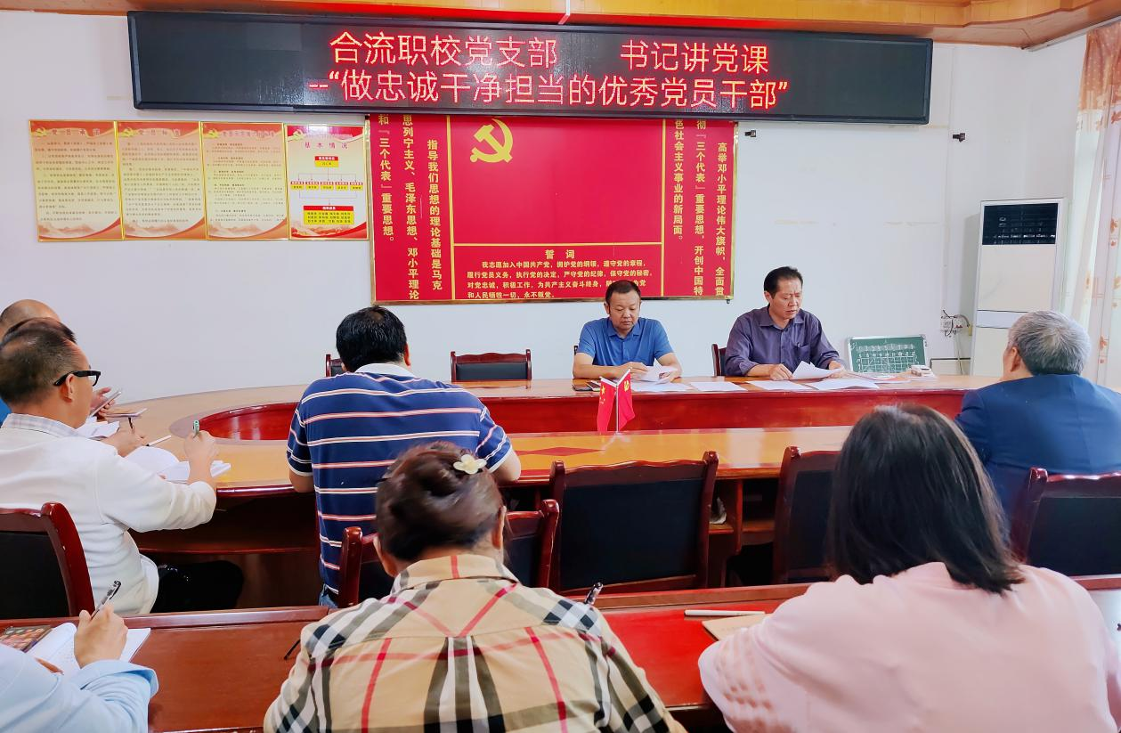 9月21日,邻水县合流职业技术学校党支部开展“书记讲党课”主题党日活动。学校支部书记王良文以“做忠诚干净担当的优秀党员干部”为题,为支部全体党员、入党积极分子上了一堂精彩的专题党课。