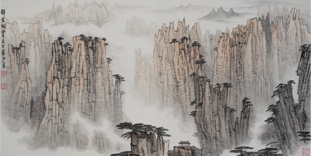 他将胸中的大美山河,笔之于画,处处散发着新金陵画派的独特韵味,又有着各地景物的鲜明特色。