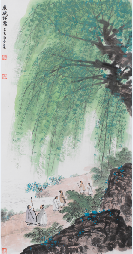 罗建泉教授是当代金陵画派代表人物,师从“新金陵画派九老”之一的张文俊,对新金陵画派的技法、心得有着独到的体会,新金陵画派代表人物的诸多特色,在他的作品中都有体现,傅抱石笔下高古清迈的人物、钱松岩画中大气庄重的常青松,都经由他的画笔,再现于人们眼前。还有张文俊的刚健俊拔、亚明的灵秀潇酒、魏紫熙墨彩交融的魏家山水,罗建泉都将其融会贯通,形成自己的风格,最终独成一家。