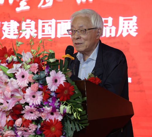 开幕式上,中国人民大学教授、著名艺术评论家陈传席通过视频对画展开幕表示祝贺,并通过视频从绘画传统的继承与创新角度评价了罗建泉的艺术成就。他说,罗建泉是金陵画派的传人,金陵画派的几个大家,他都学过,他走的是传统这条路,路子很正。但他的绘画,并不是亦步亦趋地跟前辈学,他有自己创新的东西。对画家来说,他正年富力强,以后的发展,更了不起。