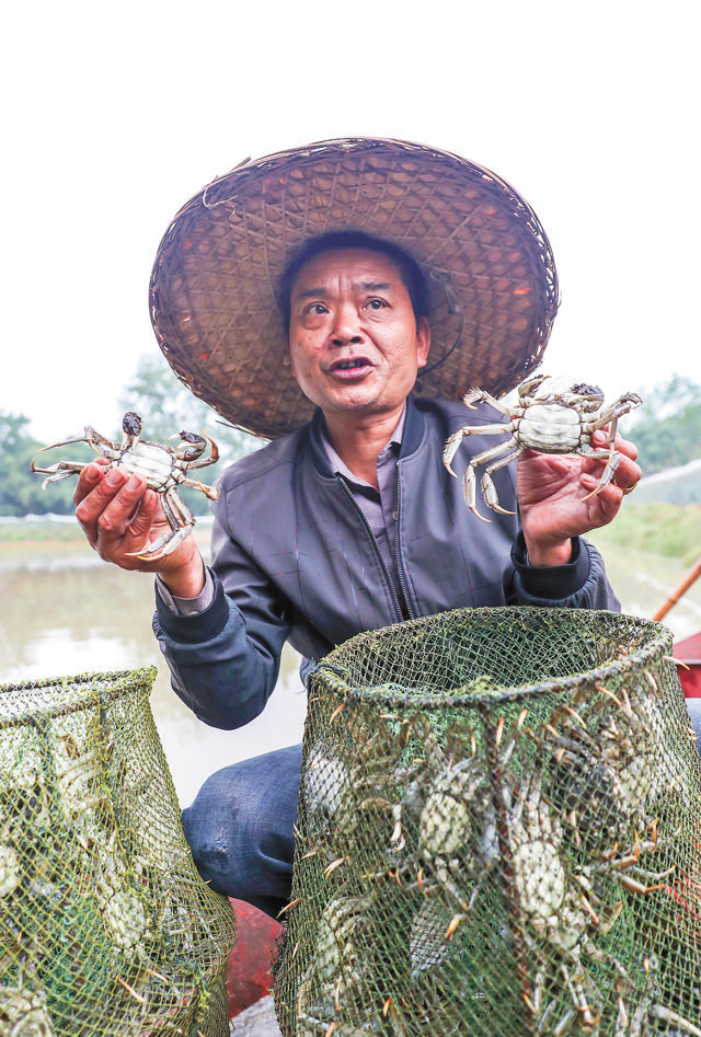 近年来,鸽笼山村因地制宜建起近400亩黄金白大闸蟹养殖基地,并采用“基地+农户+市场”模式引导农民参与,助农增收,进一步夯实乡村振兴基础。(刘南贤、邱海鹰/文图)