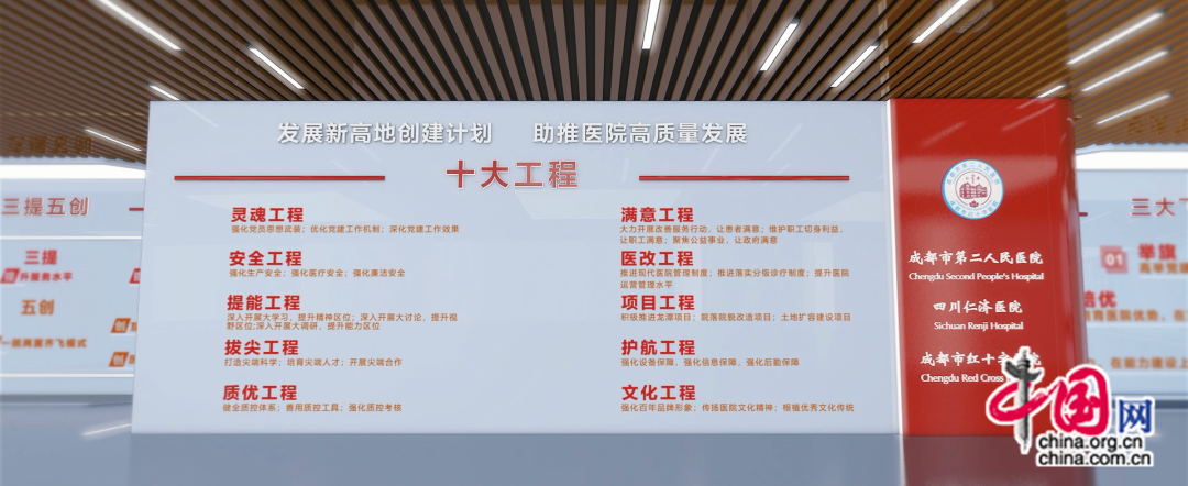 为践行“健康中国战略”,成都市第二人民医院坚持以人民健康为中心,将党建工作与医改深度融合,高起点谋划“十大工程”“三提五创”“三大飞跃”“五有五新”以及“卓越十化”等发展战略,充分发挥党建引领作用,推动党的建设与各项业务工作紧密结合,为医院科学健康、可持续发展提供了坚强引领和强大动力。