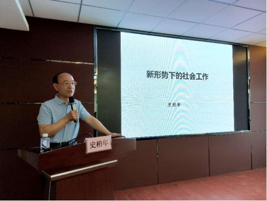 (史柏年教授作了《新形势下的社会工作》的讲座)