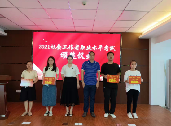 (德化县民政局为2021年取得社会工作职业证书人员代表颁发奖励金)