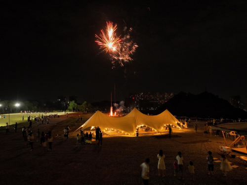 烟花、音乐、飞盘、电影、烧烤……国庆假期,在江西省萍乡市安源区青山镇户外运动营地,一顶顶露营帐篷错落有致,三五游客围坐在藤椅上开怀畅谈,中央舞台的节目表演精彩纷呈,乡村里一派热闹欢乐景象。