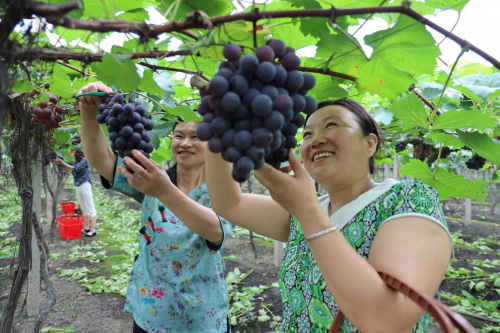游客在乌石印象生态园内的葡萄基地采摘葡萄