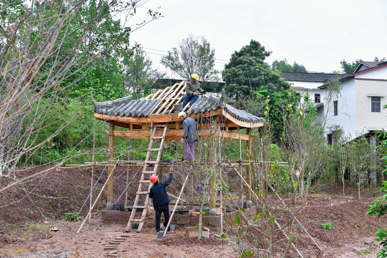 现场看到,“春季”节点建有四角亭、月牙湖,庭院围墙建筑材质以竹块为主,绿化则栽植碧桃、红花玉兰等;“夏季”节点建有葡萄架、休闲桌椅,“秋季”节点则建起村民广场、廊架,配套健身器材等,这两个节点的庭院围墙材质均以仿古青砖和青瓦为主,并在墙体中巧妙地镶嵌进磨盘、坛子等农家物品,四周绿化主要为柚树、桂花树、黄桷树及秋菊等;而在“冬季”节点,将为村民建起统一熏制腊肉的灶台,庭院围墙变成了砖木材质,绿化则突出腊梅等耐寒品种。“每个节点都有不一样的风格特点,真可谓匠心独运,让游客一路走来有移步换景的感觉。”张伟亮表示。